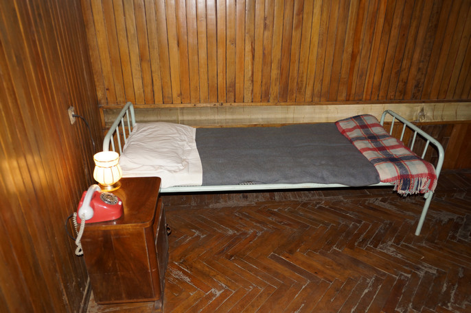 Постель Энвера Ходжи в его подземном бункере в центре Тираны.