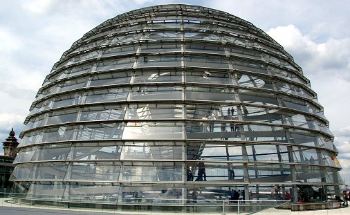 Да, по поводу этого купола - вобщем он очень тяжелый и главное несет экологические функции. Под ним - зал заседаний, и вся конструкция (кстати открытая сверху) преломляет свет для освещения зала.