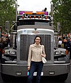 Караван из десятков дальнобойщиков с танцами и шоу на борту ехал через весь город, типа демонстрации.