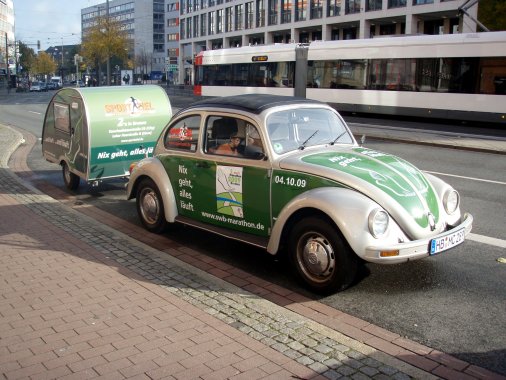 Старый "Жук" и новый трамвай на заднем плане ещё те аттракционы...
