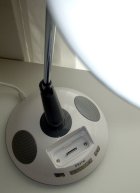 Эта настольная лампа совмещает в себе Dock-station для iPod. То есть через неё можно слушать музыку с плеера.