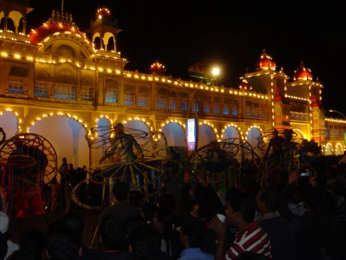 Карнавал во Всемирной деревне на фоне павильона Индии.