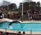 :: Несколько раз в день на нескольких эстрадах проходят выступления животных. Это выступают дельфины и морские котики, а вообще ещё есть выступления слонов, птиц, пингвинов и львов.