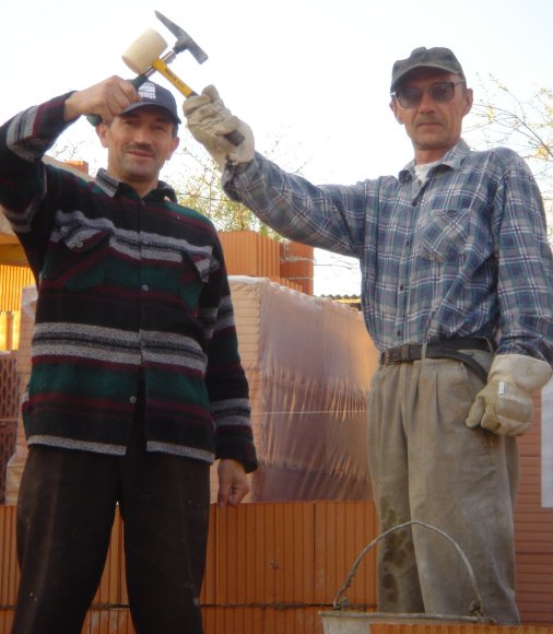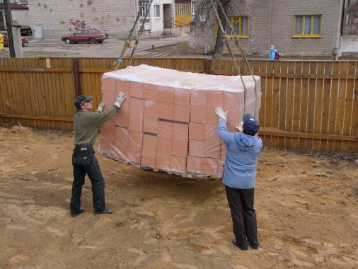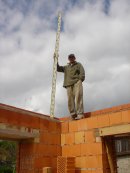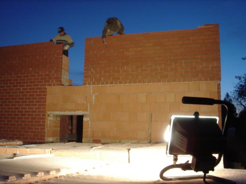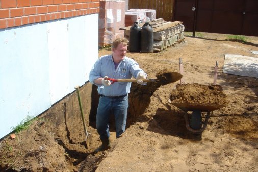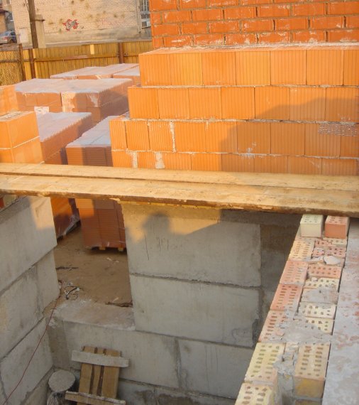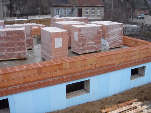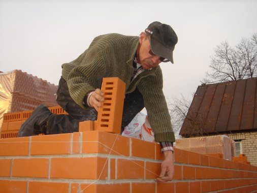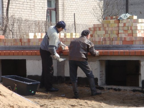 Первый этаж.![]() Перекрытый подвал переждал зиму и теперь готов принять новые нагрузки. ![]() Укладка первого ряда кирпечей черезвычайно важна - от неё зависит вся остальная стена. ![]() Наружные стены выполнены из Кератерм-блоков и облицованы тонким кирпичём. ![]() Керамические блоки являются экологически чистым материалом, т.к. сделаны из глины. При этом они имеют толщину 44см и не требуют дополнительного утепления. ![]() Для разгрузки блоков требуется задействовать довольно много народу. ![]() Особенно важен командующий состав... ![]() Когда столько командиров - не поймёшь как им нитку натянуть? ![]() И фундамент то и дело приходится то откапывать... ![]() то закапывать... ![]() Такое безобразие вынуждает создавать профсоюзы! ![]() Тогда работа ладится и стены растут вверх. ![]() |