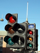 :: И вот такие светофоры. Как обычно, в каждой стране есть свои видения на эту тему.