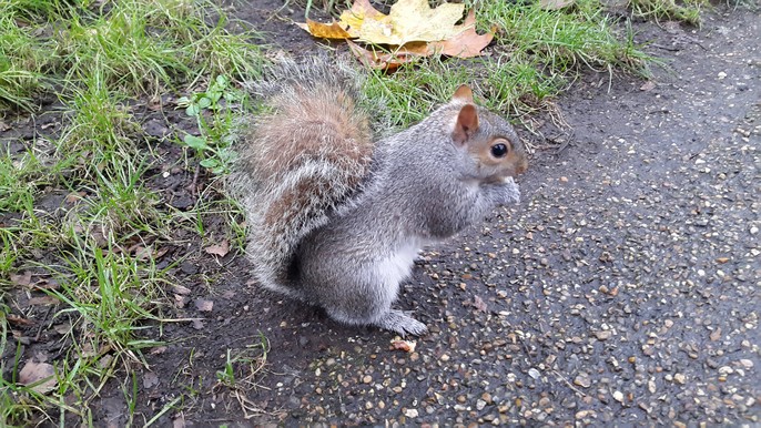 Белки в центре Лондона охотно берут еду с рук.