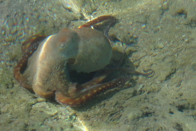 После Шарм Эль Шейха Красное море в Хургаде кажется необитаемым :) Хотя на самом деле мы видели на глубине не более 20 сантиметров(!) и ската и мурену и осьминога! Но живых кораллов здесь гораздо меньше.
