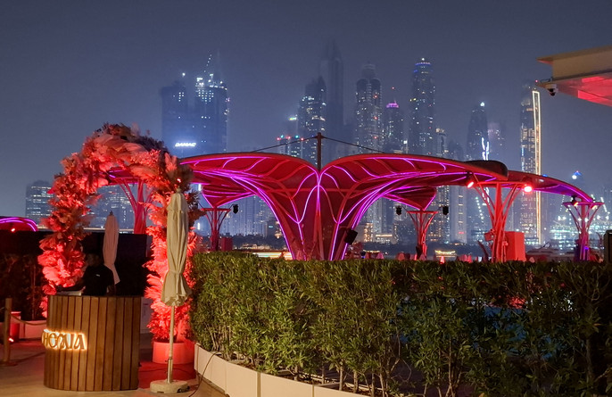 Невероятно, но мы сходили на концерт Todes. Он проходил как раз на последней ветке Пальмы. Более того, на самом Пальмовом острове есть постоянный филиал школы балета Аллы Духовой. У них снаружи на стенке большой экран,