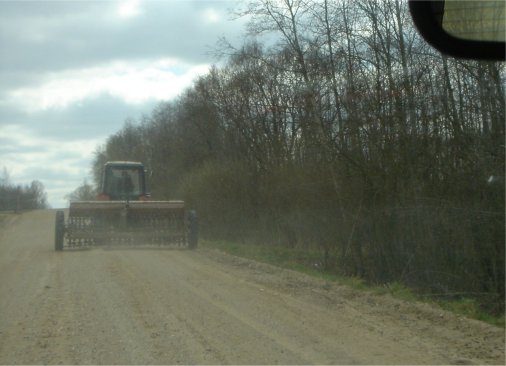 перегораживало всю ширину дороги, но к сожалению к моменту, когда я достал фотоаппарат трактор уже съехал на обочину.