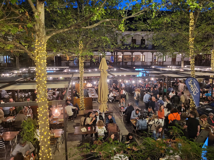 Ещё одна приятная неожиданность - здесь много зелени. Сравнимо только с Берлином, но там прямо лесные массивы в центре города, а здесь просто много деревьев на улице. Просто всё засажено, даже внутренний двор ресторана Хану Луи Манук