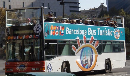 Очень популярны открытые туристические автобусы. Флаги нарисованные на борту показывают на каких языках