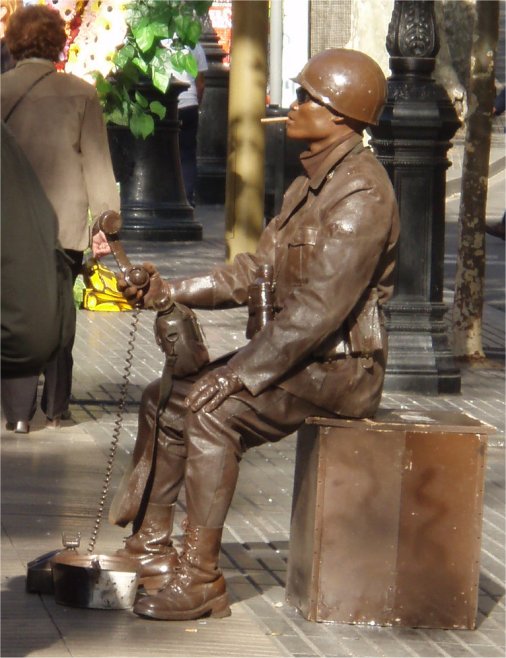 Главная улица города La Rambla - место постоянного скопления приезжих. Здесь студенты зарабатывают развлекая прохожих