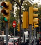 :: Светофоры имеют жёлтую окраску, причём не всегда там красный, жёлтый и зелёный фонари - иногда 2 жёлтых мигающих попеременно.