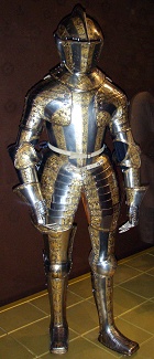 :: Старинные рыцарские доспехи с золотой росписью.