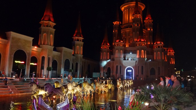 Это большой современный парк отдыха и водных развлечений, своим видом напоминающий замок Disney Land. Высота центральной башни 121 метр - она возвышается над всей окрестной равниной,