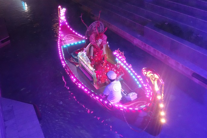 А затем начинается парад лодок, которые проплывают в тумане и огнях по всему каналу и переносят действие спектакля к сказочному замку. Там разыгрывается и вовсе невероятная сцена света и музыки,