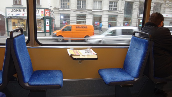 В трамваях есть столики, чтобы провести вечернюю поездку за бокалом вина!