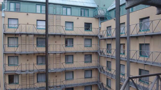 Пожарная лестница в отеле.