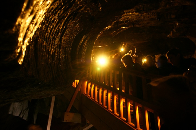 где нет освещения или ограждений. Идёшь небольшой группой в полной темноте с шахтёрским фонарём на шлеме. Проводники шутят, что им не разрешают потерять больше двух туристов за экскурсию...