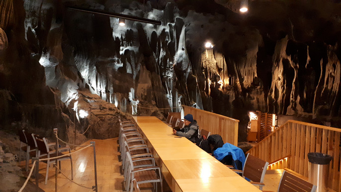 Вобщем сами удивились, но выспались хорошо, да и в самой пещере есть что делать, она просто огромная. Судите сами, там и спортзал, и соляная комната, и кафе со своим залом со столами, и магазин сувенирный, и зал дискотечный, и это всё ещё не считая нескольких залов с кроватями.