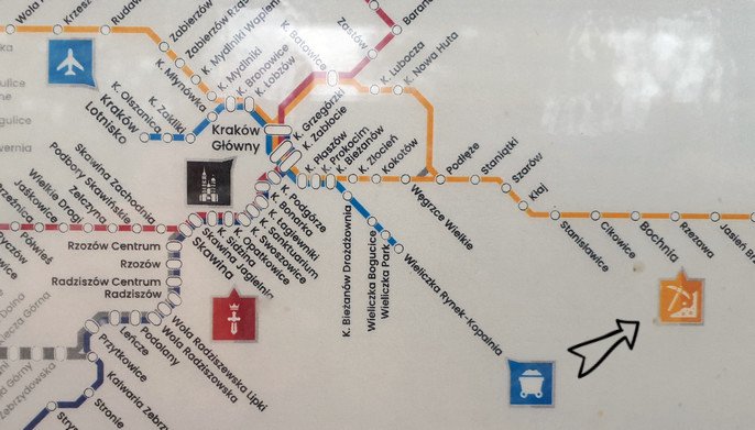 Очень запомнилось как мы добирались до Бохни. В прошлый раз на машине было просто, а сейчас на электричке оказалось сложно. Посмотреть на карту - ну что тут такого? Едешь до Бежанова, а там пересаживаешься на противоположный перон до Бохни.
